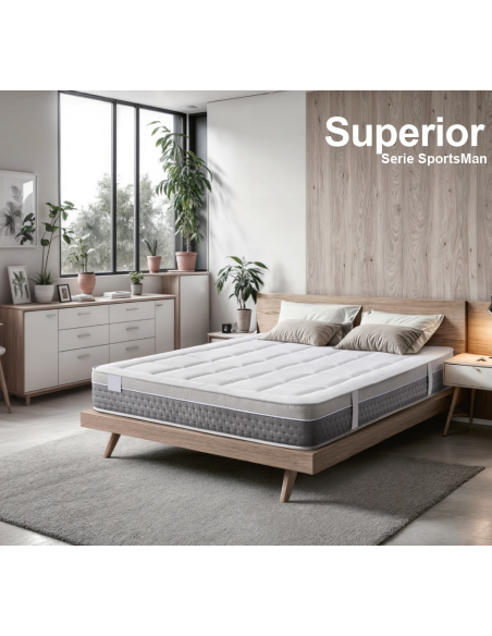 El colchón Superior ha sido diseñado para quienes prefieren un descanso con alta firmeza y mínima adaptabilidad. Su núcleo de espuma HR de 40 kg. de densidad proporciona una base sólida y resistente, ideal para mantener una postura alineada durante toda la noche. Cuenta con capas de viscoelástica de 50 kg y ViscoPlume en ambas caras, lo que permite utilizarlo por las dos caras y prolongar su vida útil. Está confeccionado con tejido técnico MAX de 380 gr, transpirable y con tratamiento antiácaros, que contribuye a mantener un entorno de descanso más higiénico y saludable. Superior es sinónimo de resistencia, higiene y firmeza, pensado para quienes saben exactamente lo que quieren al dormir.