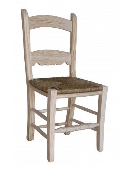 Silla fabricada en madera de pino con asiento de anea, madera o pretapizado