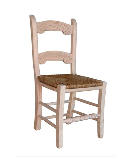 Silla fabricada en madera de pino con asiento de anea, madera o pretapizado