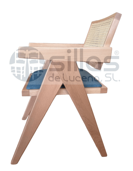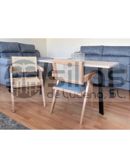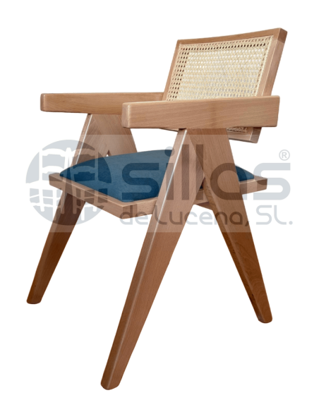 Silla elaborada enteramente en madera de haya, caracterizada por su resistencia, durabilidad y tonalidad clara. El asiento está confeccionado con una superficie de rejilla (habitualmente de mimbre, ratán o fibras naturales entrelazadas), que proporciona ventilación, ligereza visual y un estilo tradicional o artesanal. Aunque también se puede servir con el asiento tapizado, solo tiene que elegir esta opción en la configuración de la silla. Este tipo de silla es común en mobiliario clásico, rústico o vintage, y combina estética natural con comodidad.