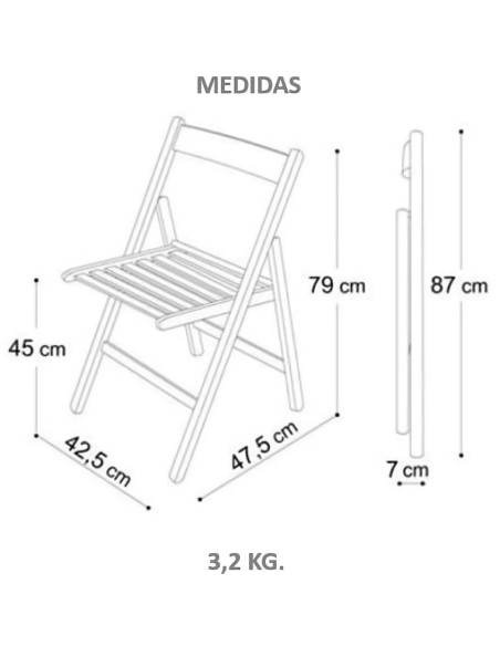 Silla plegable en madera de haya de fabricación nacional.