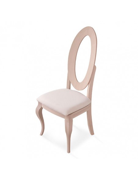 Fabricada en madera de haya con asiento pretapizado y respaldo calado.