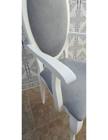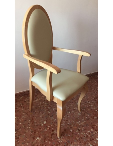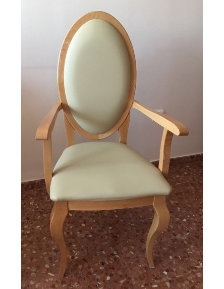 Sillón fabricado en madera de haya con asiento y respaldo pretapizado.