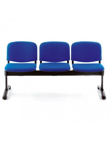 Bancada para sala de conferencias o espera. Asientos y respaldos anatómicos acolchado de alta densidad. Carcasa exterior de PCV negro. Estructura metálica con travesaño en tubo de acero 80x40x1,5 mm. Patas en tubo de acero con niveladores. Acabado de estructura, travesaño y patas en epoxi negro. Disponible en 2, 3, 4 y 5 plazas.