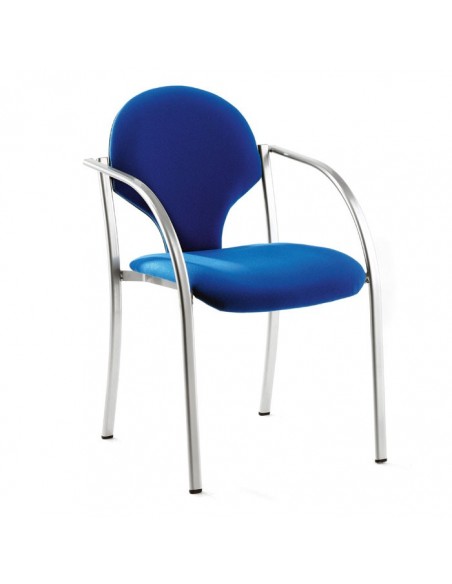 Sillón fijo apilable con brazos. Acolchado en poliuretano de alta densidad en asiento 30 kg/m3 y respaldo 25 kg/m3. Carcasa exterior en el respaldo de PVC negro. Estructura 4 patas con brazos en tubo de acero oval de 30x15x1,5 mm. Acabado de estructura cromado. Apilable máximo 6 unidades.