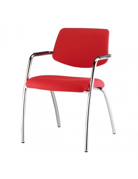 Sillón confidente apilable respaldo corto tapizado. Apoya brazos de PVC negro. Acolchado en poliuretano de alta densidad en asiento 30 kg/m3 y respaldo 25 kg/m3. Carcasa exterior en asiento y respaldo de PVC negro. Estructura 4 patas en tubo de acero redondo de 25x2 mm. Acabado de estructura cromado. Apilable máximo 4 unidades.