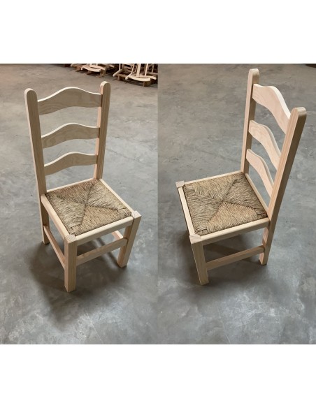 Silla fabricada en madera de pino con asiento de madera, anea o pretapizado