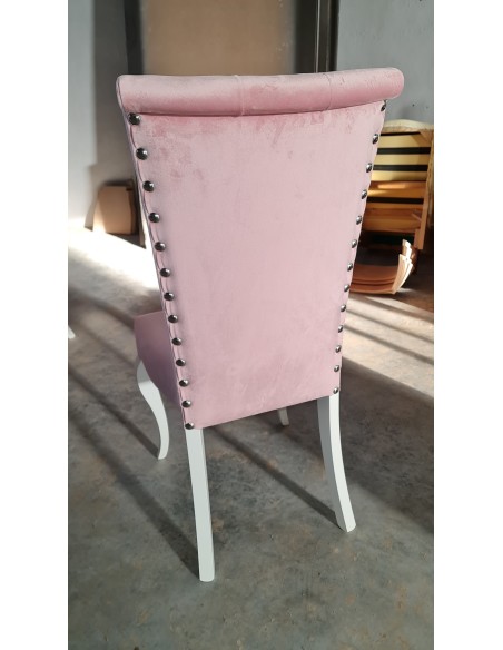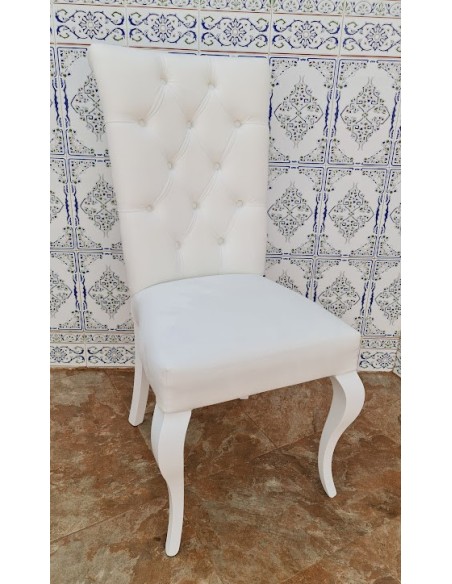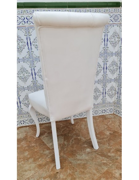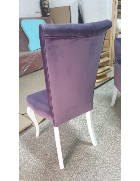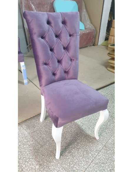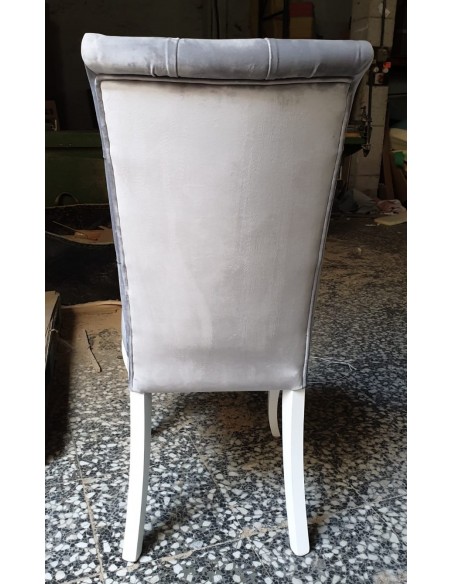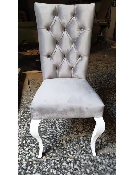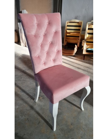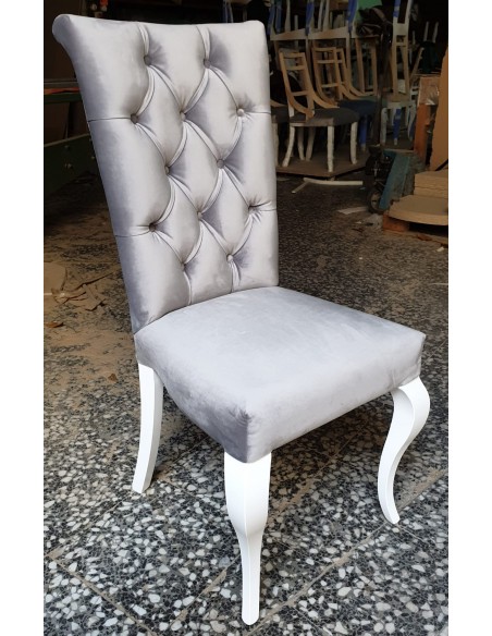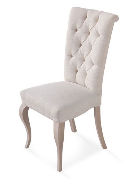 Silla con un alto estilo de elegancia, fabricada en madera de haya con asiento, respaldo y contra-respaldo tapizado al gusto.