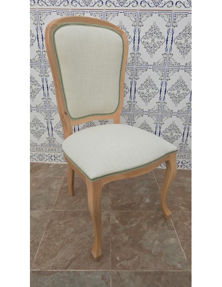Fabricada en madera de haya con asiento y respaldo tapizado.