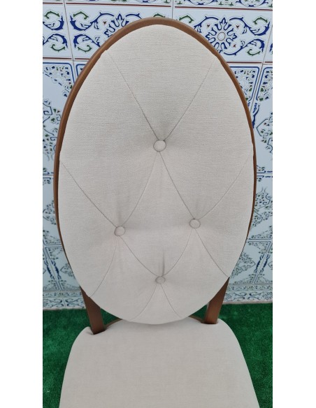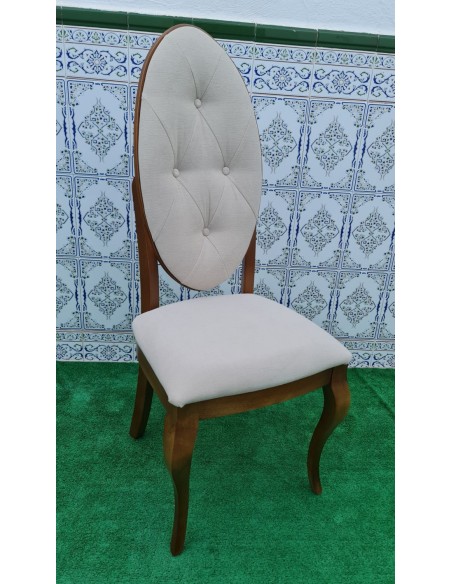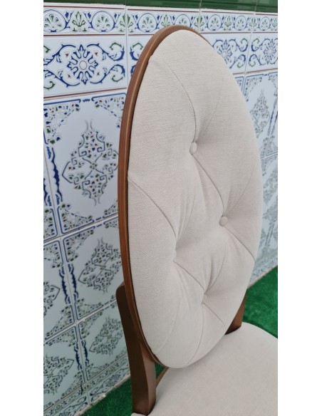 Fabricada en madera de haya con asiento pretapizado y respaldo en capitoné.