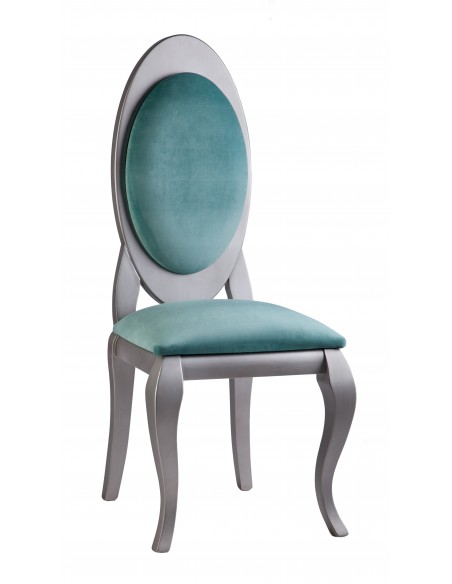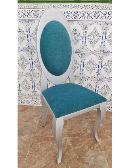 Silla fabricada en madera de haya y pata Isabelina con asiento y respaldo pretapizado.